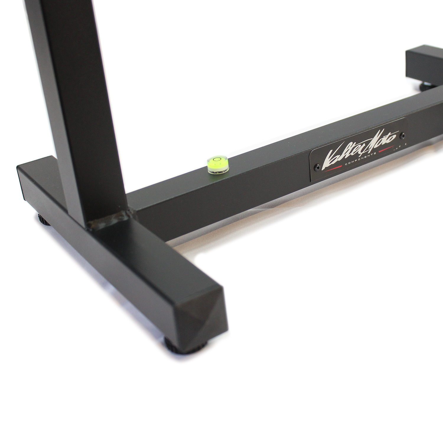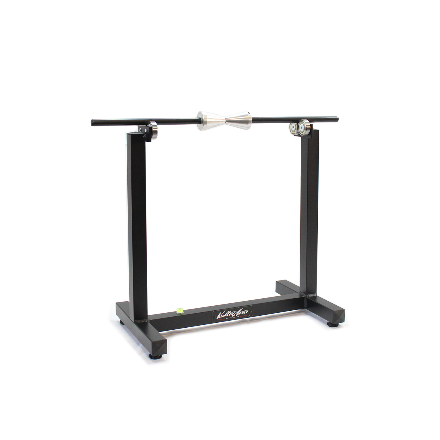 A needful tool to correcly balance wheels after the tyre service. It is made with a hard steel frame. Balancing bar works over four ball bearing. Block cones are made with alu alloy CNC machined. It is equipped with air bubble level and adjustable feet.