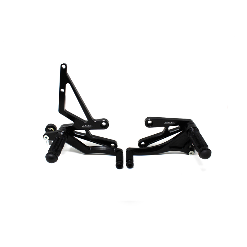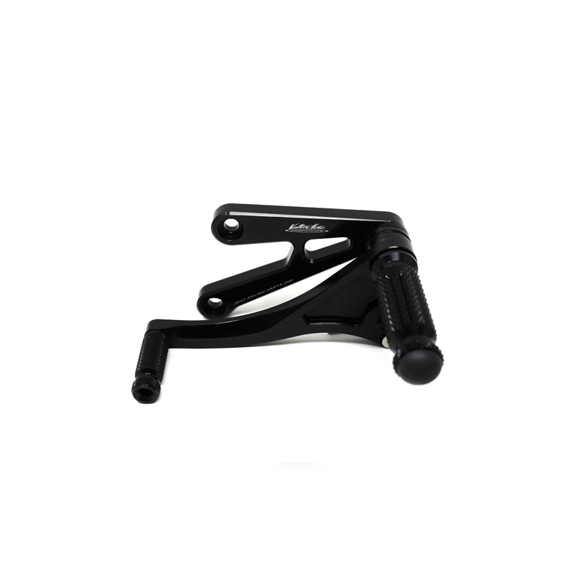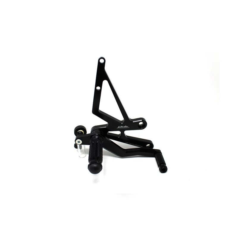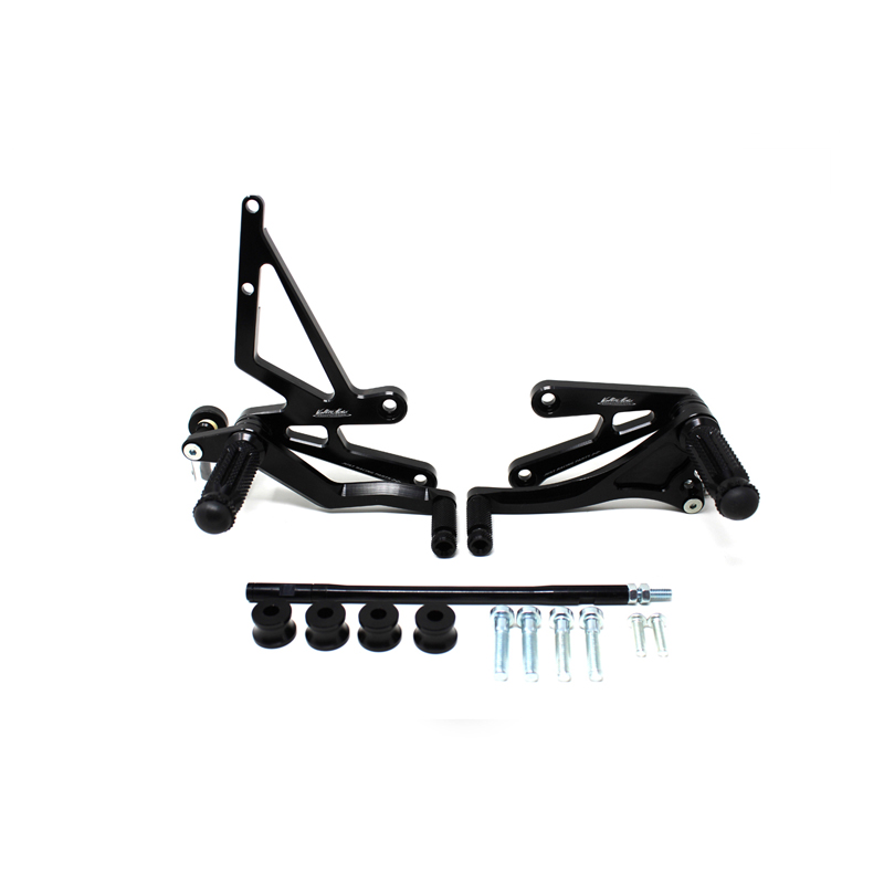 Entirely made with CNC machinery in Ergal 7075 T5 alloy, Type 1 rearsets are developed for street/racing use. Footpegs and frontpegs are made in aluminum alloy machined to obtain optimal grip. Shift lever is mounted on two ball bearings to avoid any friction. Rearsets are provided with the correct lenght shift rod, shift and brake ball joints. All spare parts are available. Possibility to fix the heel protectors.