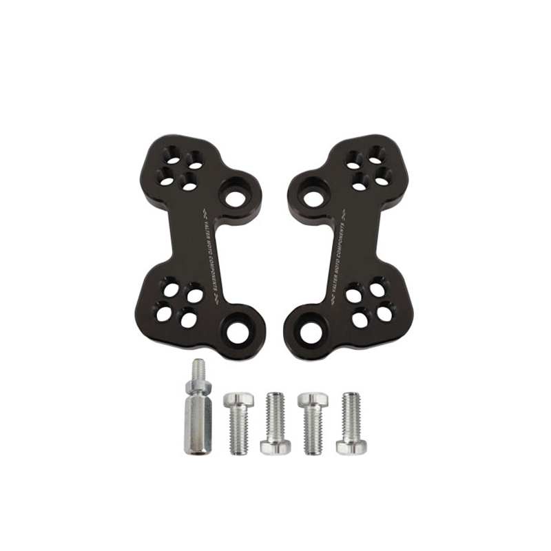 Rearsets adjuster kit allows to change original rearsets position till 25/30 mm rear and high by 2/4 different set-up points to find a better feeling. Entirely made with CNC machinery in Ergal 7075 T5 alloy are provided with a shift rod extender to avoid any modify during assembly.