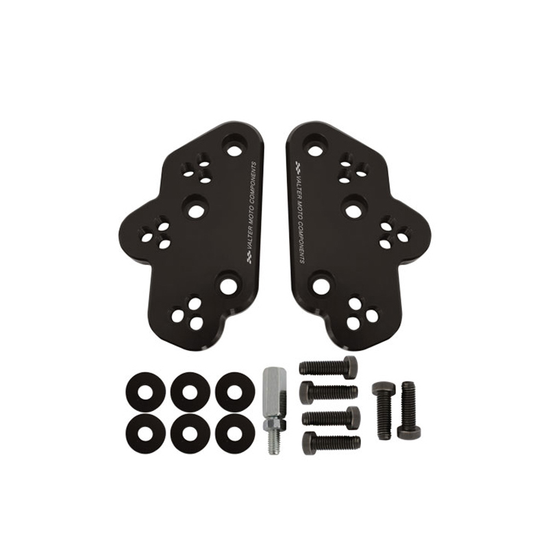Rearsets adjuster kit allows to change original rearsets position till 25/30 mm rear and high by 2/4 different set-up points to find a better feeling. Entirely made with CNC machinery in Ergal 7075 T5 alloy are provided with a shift rod extender to avoid any modify during assembly.