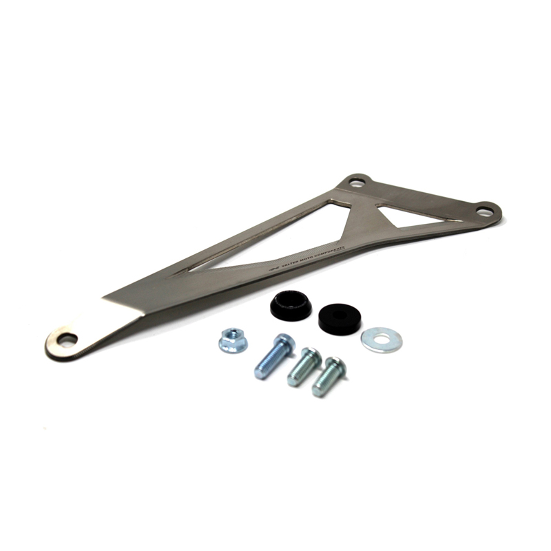 Titanium racing muffler bracket is developed with professional racing Team to find the best weight/strenght ratio. This special part is CNC machined for a better look and to be lighter as possible. It is easy to mount instead of OEM part. It is available only in natural Titanium color laser marked Valter Moto Components