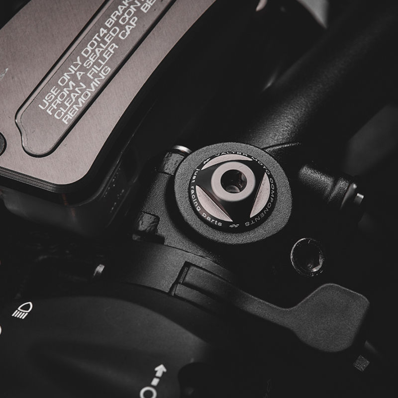 Handlebar mirror hole cap made with alu alloy CNC machined. This cap was developed to cover the hole of the standard mirror mounted on the handlebars. It is available with oxidation in different colors and is branded Valter Moto Components. The package contains a single cap. Thread M10x1.25 RIGHT.