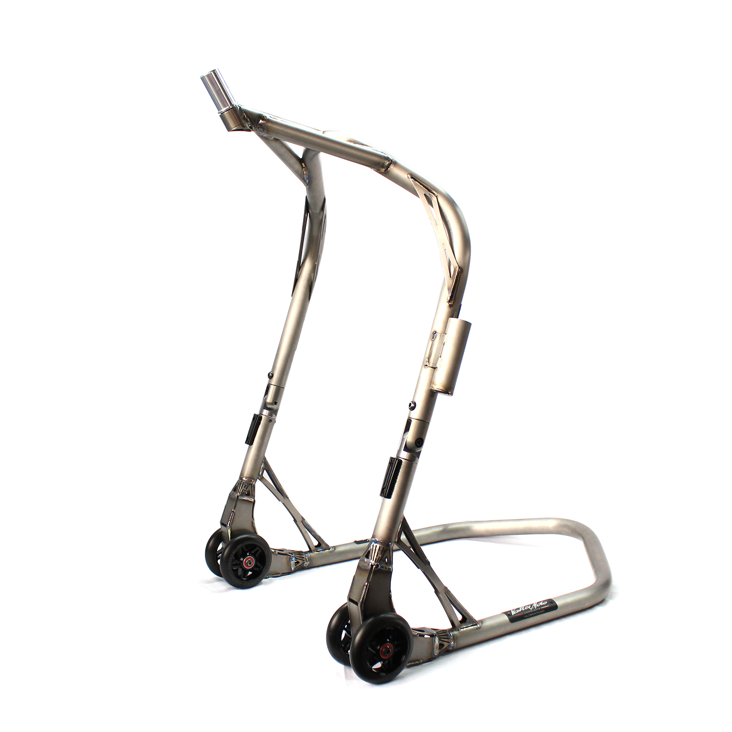 I cavalletti laterali estensibili VMC sono una coppia di supporti che permettono di mantenere sollevata la moto durante gli interventi alla parte posteriore o anteriore della moto. Sono realizzati in tubi di titanio. Possono essere utilizzati per tenere sollevata la moto dai poggiapiedi. 350mm