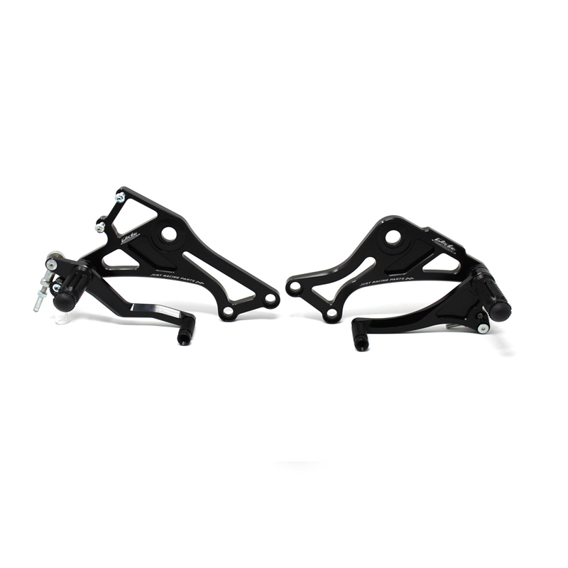 Interamente realizzate in Ergal 7075 T5 lavorato su centri di lavoro CNC questo modello di pedane è stato sviluppato per un uso stradale e pista. I poggiapiedi e i puntalini in alluminio sono lavorati per garantire un grip ottimale. La leva freno è montata su 2 cuscinetti a sfera per ridurre al minimo l'attrito. Il kit comprende tutta la viteria necessaria per il montaggio, l'asta cambio della corretta lunghezza e gli snodi sferici lato cambio e lato freno. Per le pedane VMC sono sempre disponibili tutti i ricambi. Possibilità di montare le alette paratacco.