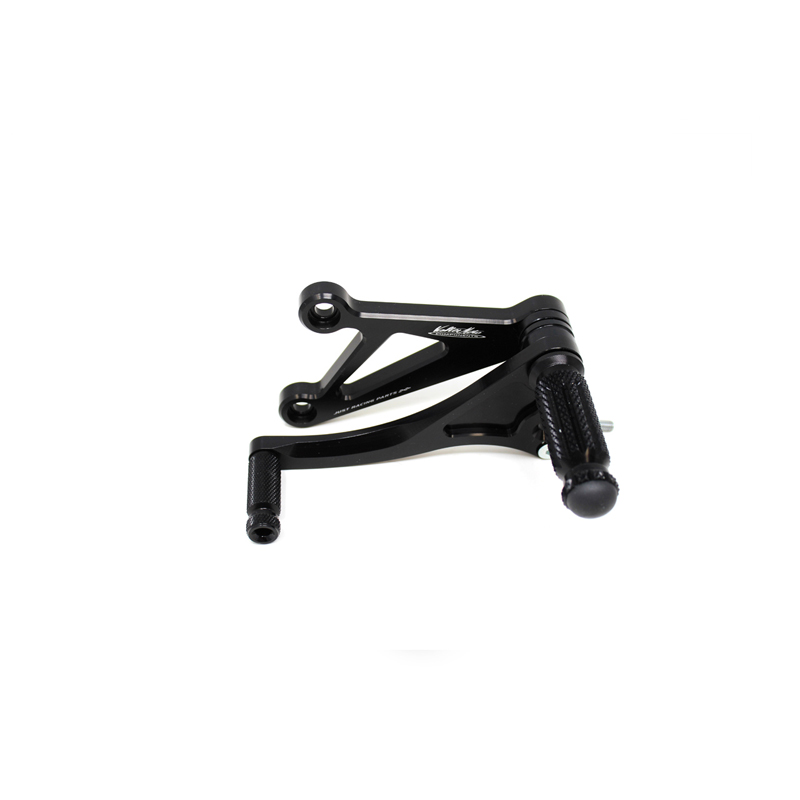 Interamente realizzate in Ergal 7075 T5 lavorato su centri di lavoro CNC questo modello di pedane è stato sviluppato per un uso stradale e pista. I poggiapiedi e i puntalini in alluminio sono lavorati per garantire un grip ottimale. La leva freno è montata su 2 cuscinetti a sfera per ridurre al minimo l'attrito. Il kit comprende tutta la viteria necessaria per il montaggio, l'asta cambio della corretta lunghezza e gli snodi sferici lato cambio e lato freno. Per le pedane VMC sono sempre disponibili tutti i ricambi. Possibilità di montare le alette paratacco.
