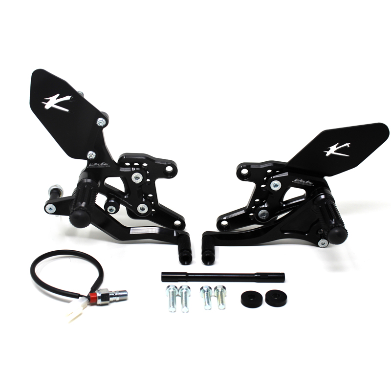 Le pedane regolabili Tipo 1.5 sono interamente realizzate in Ergal 7075 T5 lavorato su centri di lavoro CNC ed il loro utilizzo è consigliato per strada e pista. I poggiapiedi e i puntalini in alluminio sono lavorati per garantire un grip ottimale. Le leve cambio e freno sono entrambe montate su 2 cuscinetti a sfera per ridurre al minimo l'attrito. Le piastre regolabili permettono da 6 a 9 posizioni diverse delle pedane consentendo di trovare il miglior set-up per il proprio stile di guida. Il kit comprende le alette paratacco in alluminio, tutta la viteria necessaria per il montaggio, l'asta cambio della corretta lunghezza, gli snodi sferici lato cambio e lato freno e l'interruttore a pressione per la luce stop. Per le pedane VMC sono sempre disponibili tutti i ricambi.