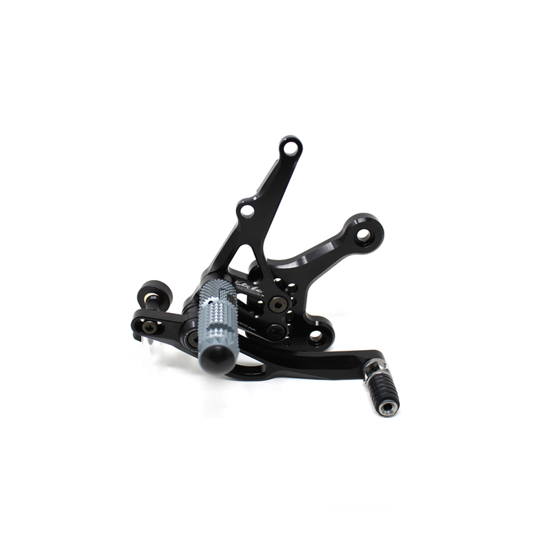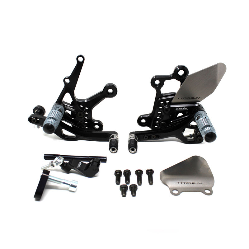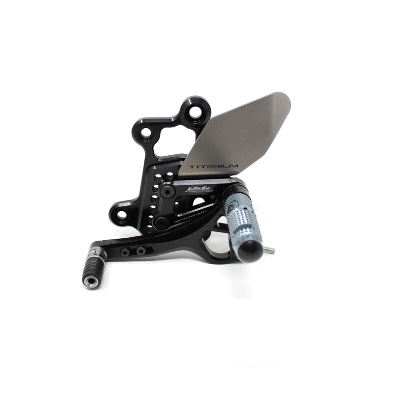 Le pedane regolabili Tipo 3.5 sono il modello di punta della gamma VMC e vengono utilizzate da molti piloti in campionati nazionali e mondiali. Vengono interamente realizzate in Ergal 7075 T5 lavorato su centri di lavoro CNC e sono consigliate prevalentemente per uso pista. I poggiapiedi sono lavorati per offrire il massimo grip, sono reclinabili ma possono essere bloccati tramite un sistema a vite e sono dotati di semisfera protettiva in nylon come previsto dai regolamenti. I nuovi puntalini sono fissi, in alluminio godronato ed ergonomici per facilitare la cambiata e la frenata. Le leve cambio e freno sono lavorate per essere alleggerite e sono entrambe montate su 2 cuscinetti a sfera per ridurre al minimo l'attrito. Sia per la leva cambio che per la leva freno è stato adottato un sistema a slitta che permette la regolazione longitudinale della posizione del puntalino di 10 mm. Le piastre regolabili permettono da 6 a 9 posizioni diverse delle pedane consentendo di trovare il miglior set-up per il proprio stile di guida. Il kit comprende le alette paratacco in titanio, tutta la viteria necessaria per il montaggio, l'asta cambio della corretta lunghezza, gli snodi sferici lato cambio e lato freno e l'interruttore a pressione per la luce stop. Per le pedane VMC sono sempre disponibili tutti i ricambi.