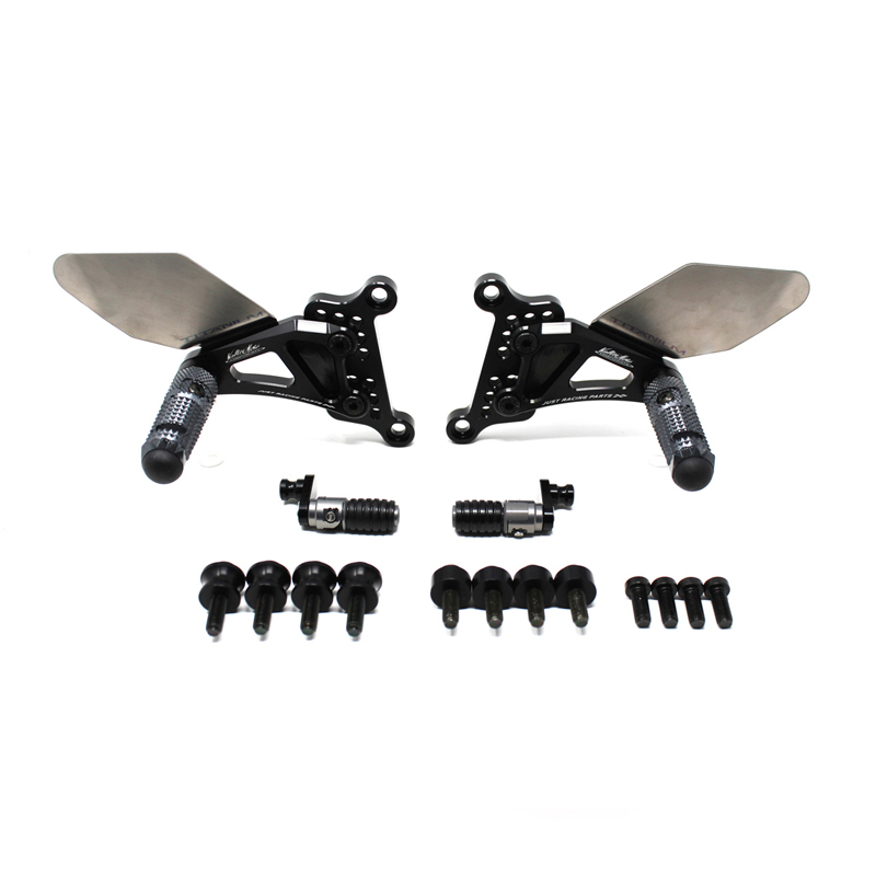 Le pedane regolabili Tipo 3.5 sono il modello di punta della gamma VMC e vengono utilizzate da molti piloti in campionati nazionali e mondiali. Vengono interamente realizzate in Ergal 7075 T5 lavorato su centri di lavoro CNC e sono consigliate prevalentemente per uso pista. I poggiapiedi sono lavorati per offrire il massimo grip, sono reclinabili ma possono essere bloccati tramite un sistema a vite e sono dotati di semisfera protettiva in nylon come previsto dai regolamenti. I nuovi puntalini sono fissi, in alluminio godronato ed ergonomici per facilitare la cambiata e la frenata. Le leve cambio e freno sono lavorate per essere alleggerite e sono entrambe montate su 2 cuscinetti a sfera per ridurre al minimo l'attrito. Sia per la leva cambio che per la leva freno è stato adottato un sistema a slitta che permette la regolazione longitudinale della posizione del puntalino di 10 mm. Le piastre regolabili permettono da 6 a 9 posizioni diverse delle pedane consentendo di trovare il miglior set-up per il proprio stile di guida. Il kit comprende le alette paratacco in titanio, tutta la viteria necessaria per il montaggio, l'asta cambio della corretta lunghezza, gli snodi sferici lato cambio e lato freno e l'interruttore a pressione per la luce stop. Per le pedane VMC sono sempre disponibili tutti i ricambi. Pedane senza leva freno.