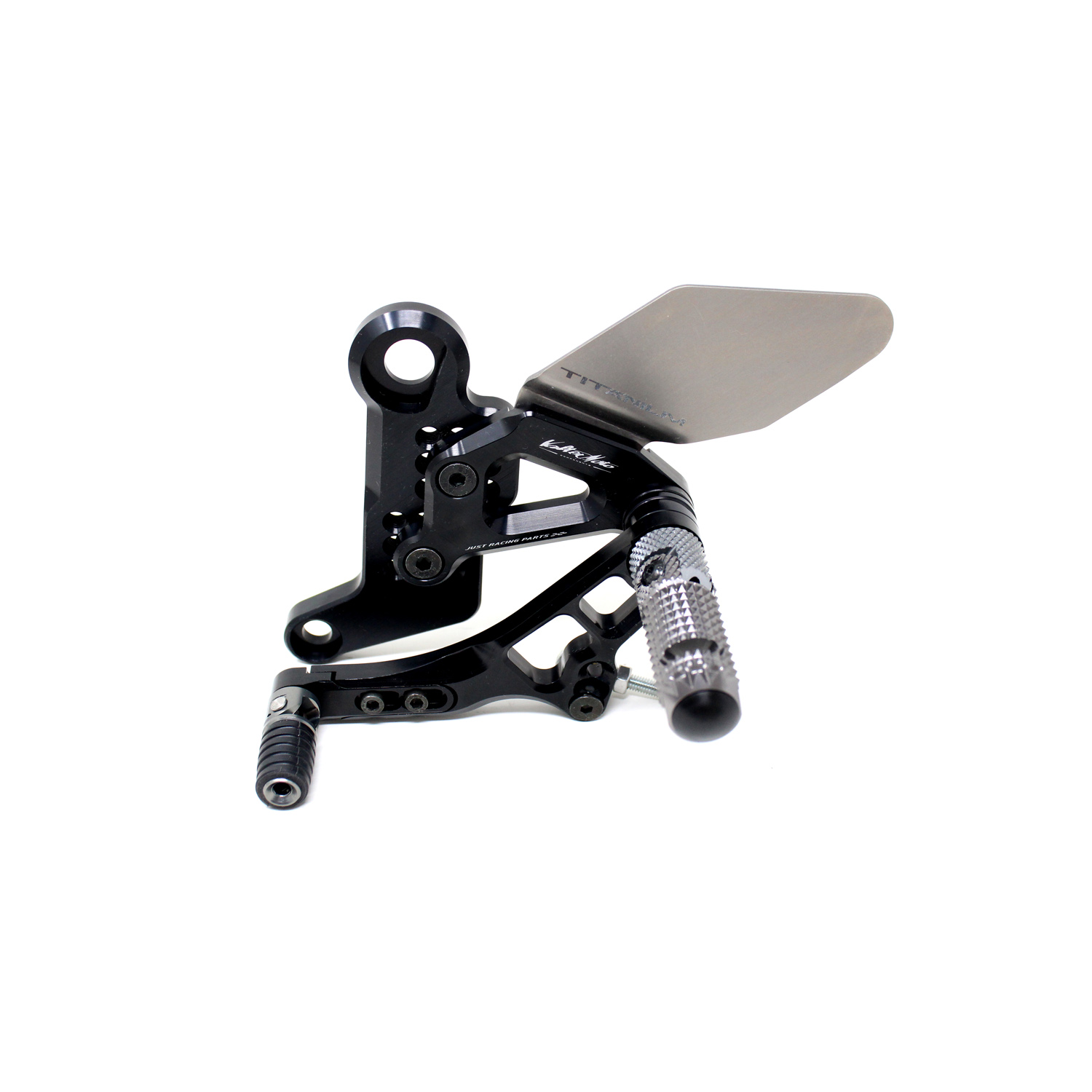 Le pedane regolabili Tipo 3.5 sono il modello di punta della gamma VMC e vengono utilizzate da molti piloti in campionati nazionali e mondiali. Vengono interamente realizzate in Ergal 7075 T5 lavorato su centri di lavoro CNC e sono consigliate prevalentemente per uso pista. I poggiapiedi sono lavorati per offrire il massimo grip, sono reclinabili ma possono essere bloccati tramite un sistema a vite e sono dotati di semisfera protettiva in nylon come previsto dai regolamenti. I nuovi puntalini sono fissi, in alluminio godronato ed ergonomici per facilitare la cambiata e la frenata. Le leve cambio e freno sono lavorate per essere alleggerite e sono entrambe montate su 2 cuscinetti a sfera per ridurre al minimo l'attrito. Sia per la leva cambio che per la leva freno è stato adottato un sistema a slitta che permette la regolazione longitudinale della posizione del puntalino di 10 mm. Le piastre regolabili permettono da 6 a 9 posizioni diverse delle pedane consentendo di trovare il miglior set-up per il proprio stile di guida. Il kit comprende le alette paratacco in titanio, tutta la viteria necessaria per il montaggio, l'asta cambio della corretta lunghezza, gli snodi sferici lato cambio e lato freno e l'interruttore a pressione per la luce stop. Per le pedane VMC sono sempre disponibili tutti i ricambi.