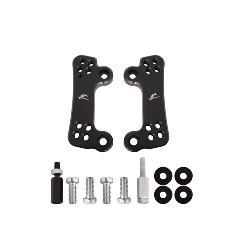 Le piastre di arretramento pedane originali VMC hanno una predisposizione di 2-4 posizioni che permettono di arretrare ed alzare le pedane di 25/30 mm per ottenere un miglior feeling con i comandi. Le piastre sono interamente ricavate dal pieno in Ergal 7075 e vengono lavorate con centri di lavoro a controllo numerico CNC. Insieme alle piastre viene fornita una prolunga per l'asta cambio originale per evitare che debba essere sostituita.