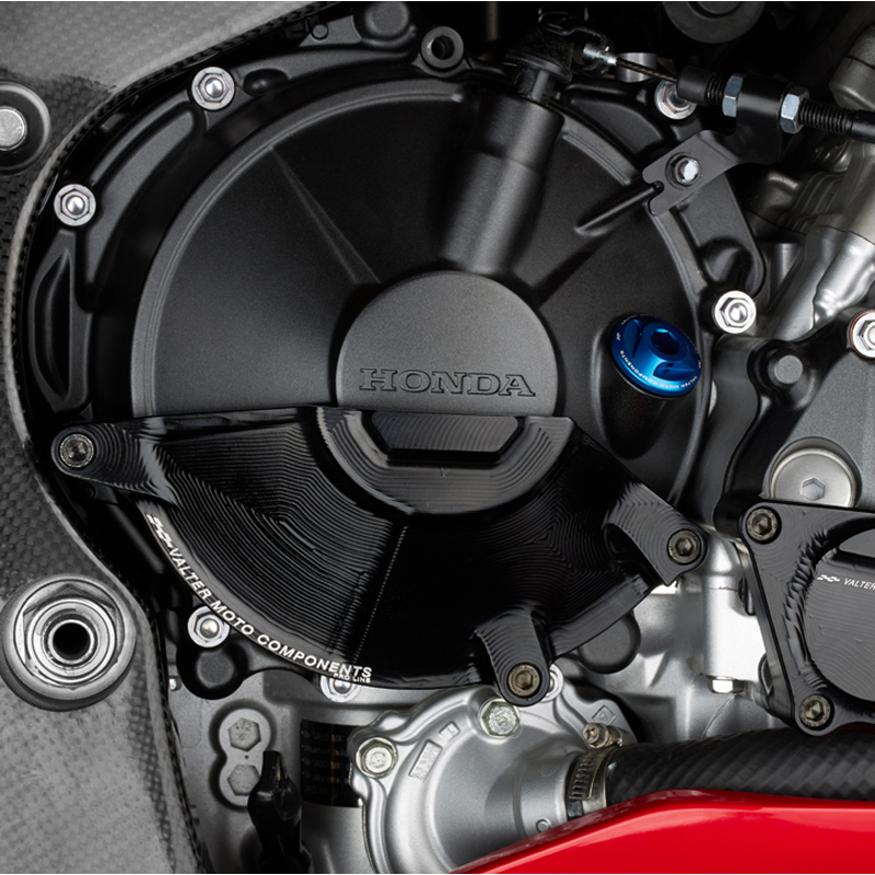 La cover di protezione carter frizione in alluminio VMC è stata sviluppata in collaborazione con professionisti del mondo delle competizioni per trovare il posizionamento ideale ed il miglior compromesso in termini di protezione e peso. Questa parte speciale è interamente ricavata dal pieno in Ergal 7075 lavorato su centri di lavoro CNC per renderla più leggera possibile senza comprometterne la resistenza. È semplice da montare perchè comprende tutti gli accessori della giusta misura per adattarsi perfettamente al carter originale. Questo accessorio fa parte della gamma PRO Line che include esclusivamente prodotti professionali.
