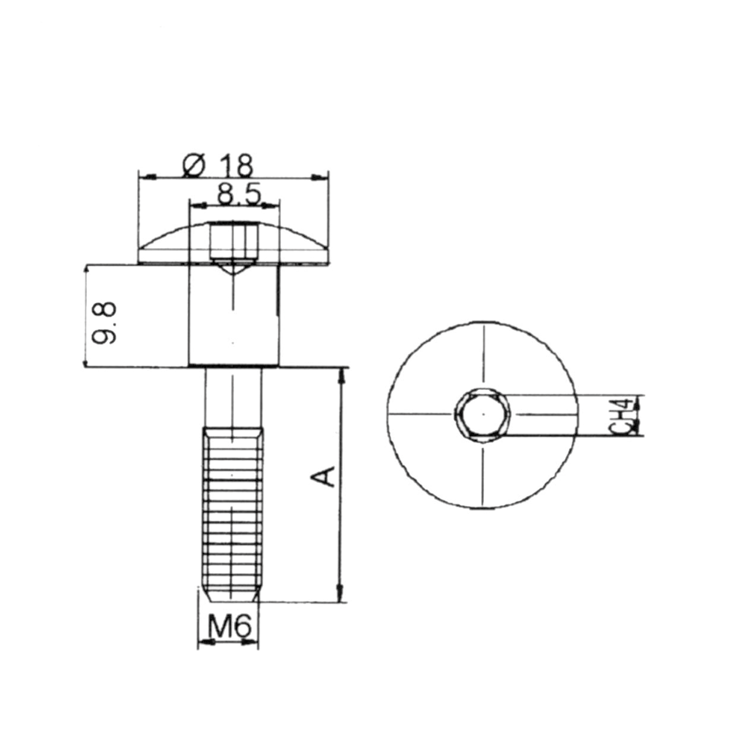 Vite con testa bombata a brugola con spessore sottotesta. Diametro 18mm, filetto M6, lunghezza 15mm, sottotesta 9.8mm. Le viti VMC sono realizzate da barra in alluminio 6082 lavorata su torni a controllo numerico.