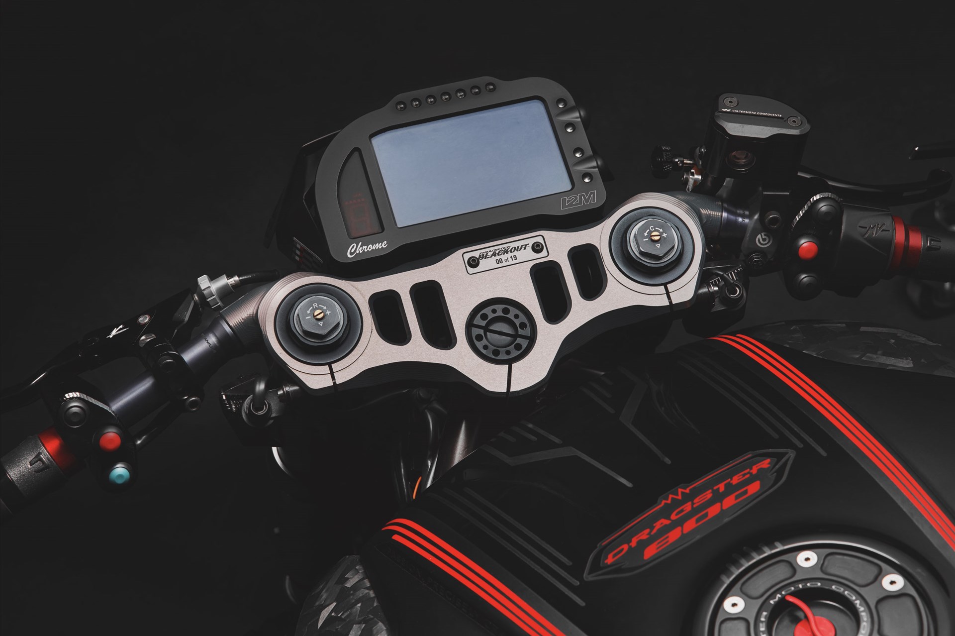 Sono tante le novità da apprezzare su questa nuova Special: partiamo con la parte anteriore, quella che deve esprimere il carattere della moto prima di tutto il resto. Nuova piastra forcella in Ergal con attacco semimanubri integrato, aste in titanio e pulsantiera racing firmati Valter Moto Components. Come per tutti i modelli esclusivi VSpecial, nella piastra forcella superiore è fissata una piastrina numerata in titanio unica che certifica il numero seriale della Limited edition. Nuovo faro led anteriore con cover e una innovativa strumentazione digitale della I2M, anche per la visione posteriore con microcamera.